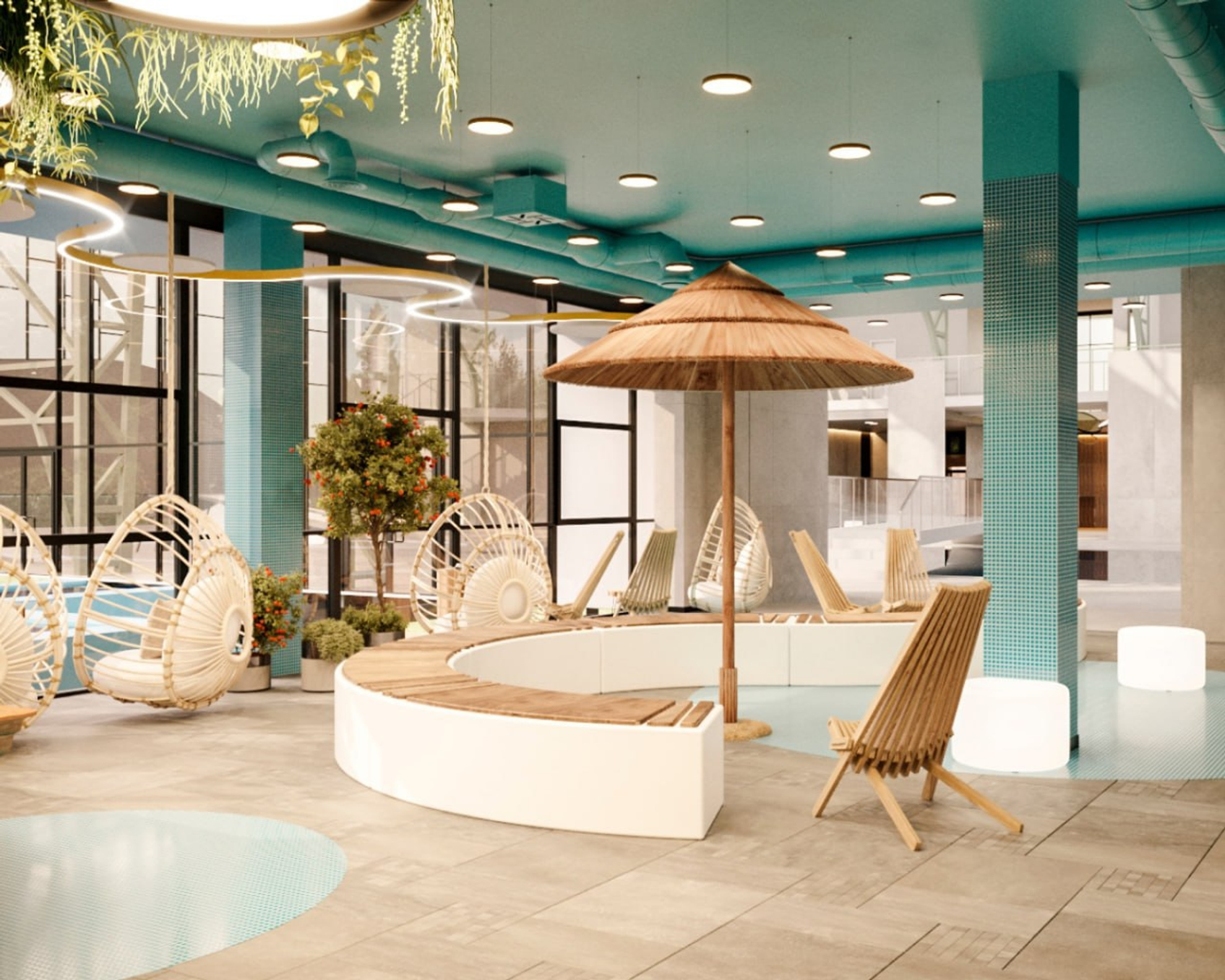 Ранее мы рассказывали, какие бани и бассейны есть на территории комплекса. Одна из его фишек — волна для серфинга. Скоро там появятся домики для проживания, еще 11 бань, также оборудуют пляжную зону.