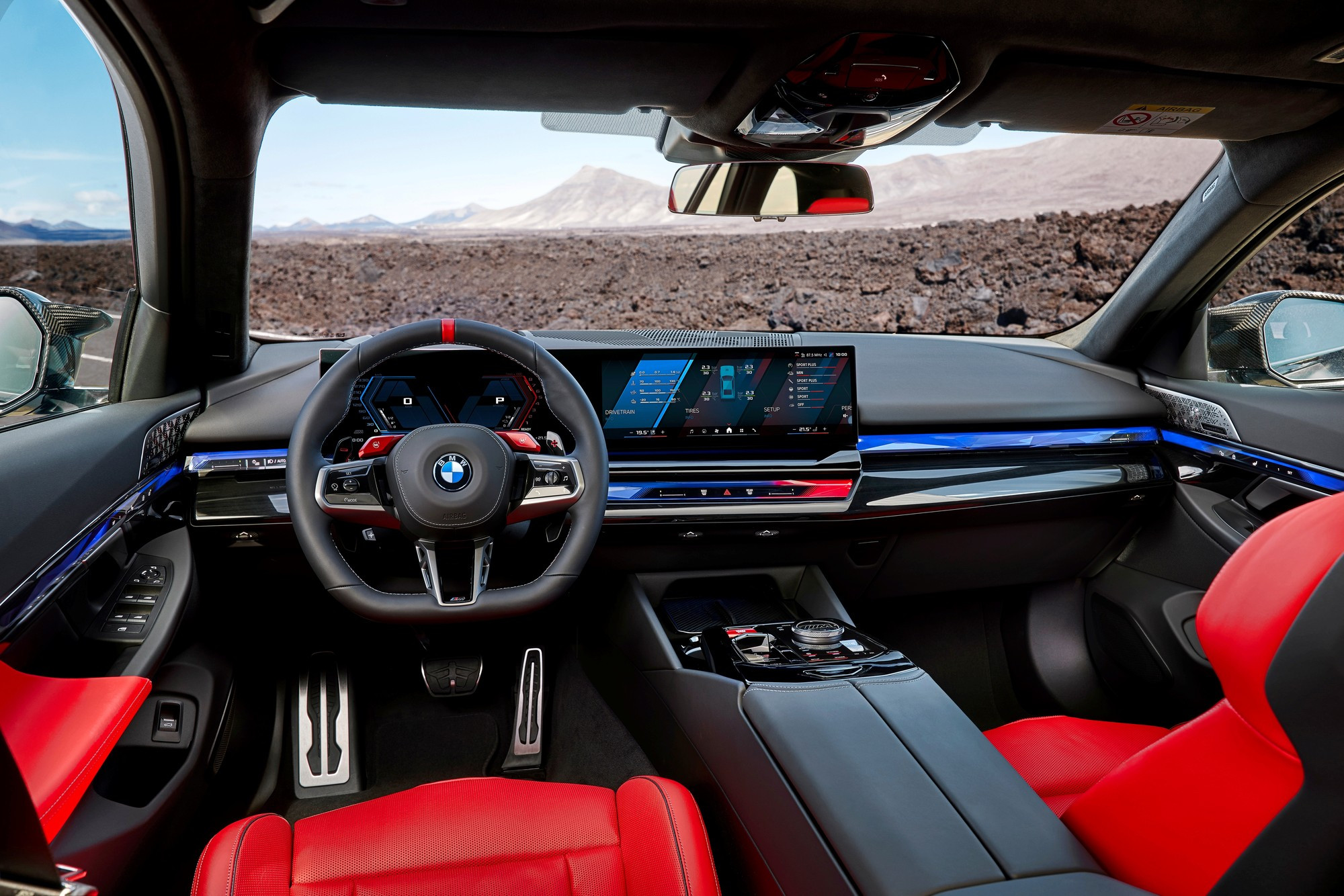 Ёмкость размещённой в полу кузова тяговой батареи — 22,1 кВт·ч, из них потребителю доступны 18,6 кВт·ч, максимальный запас хода на электротяге без включения ДВС составляет 67 км по циклу WLTP. До 100 км/ч BMW M5 Touring разгоняется за 3,6 с (на 0,1 с медленнее, чем седан). Максимальная скорость — 250 км/ч, с опциональным пакетом M Driver’s Package — 305 км/ч. При езде исключительно на электротяге максимальная скорость ограничена на отметке 140 км/ч. Подвеска у нового BMW M5 в обоих кузовах пружинная, с адаптивными амортизаторами. Допустимая масса буксируемого прицепа— 2 т, допустимая нагрузка на крышу — 100 кг. Ёмкость топливного бака — 60 л.