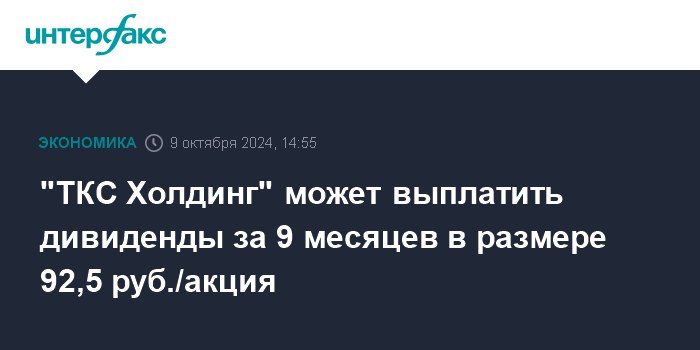 "ТКС Холдинг" может выплатить дивиденды за 9 месяцев в размере 92,5 руб./акция