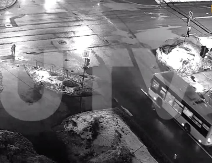 На записи с камер наблюдения компании «Уфанет» видно, как автобус начал маневр, не доехав до перекрестка, и оказался на встречной полосе. В этот момент по пешеходному переходу шла женщина. Водитель, вероятно, не заметил пешехода и совершил наезд.