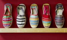 Летние тапочки с холщовым верхом и гибкой веревочной подошвой еще в начале XIV века были описаны как обувь каталонских крестьян, но в мире популярным стало французское название. Возможно, благодаря Иву Сен-Лорану, который в 1970-е разработал клиновидную модель. Так или иначе, 90% этих тапочек шьют сегодня в Бангладеш.