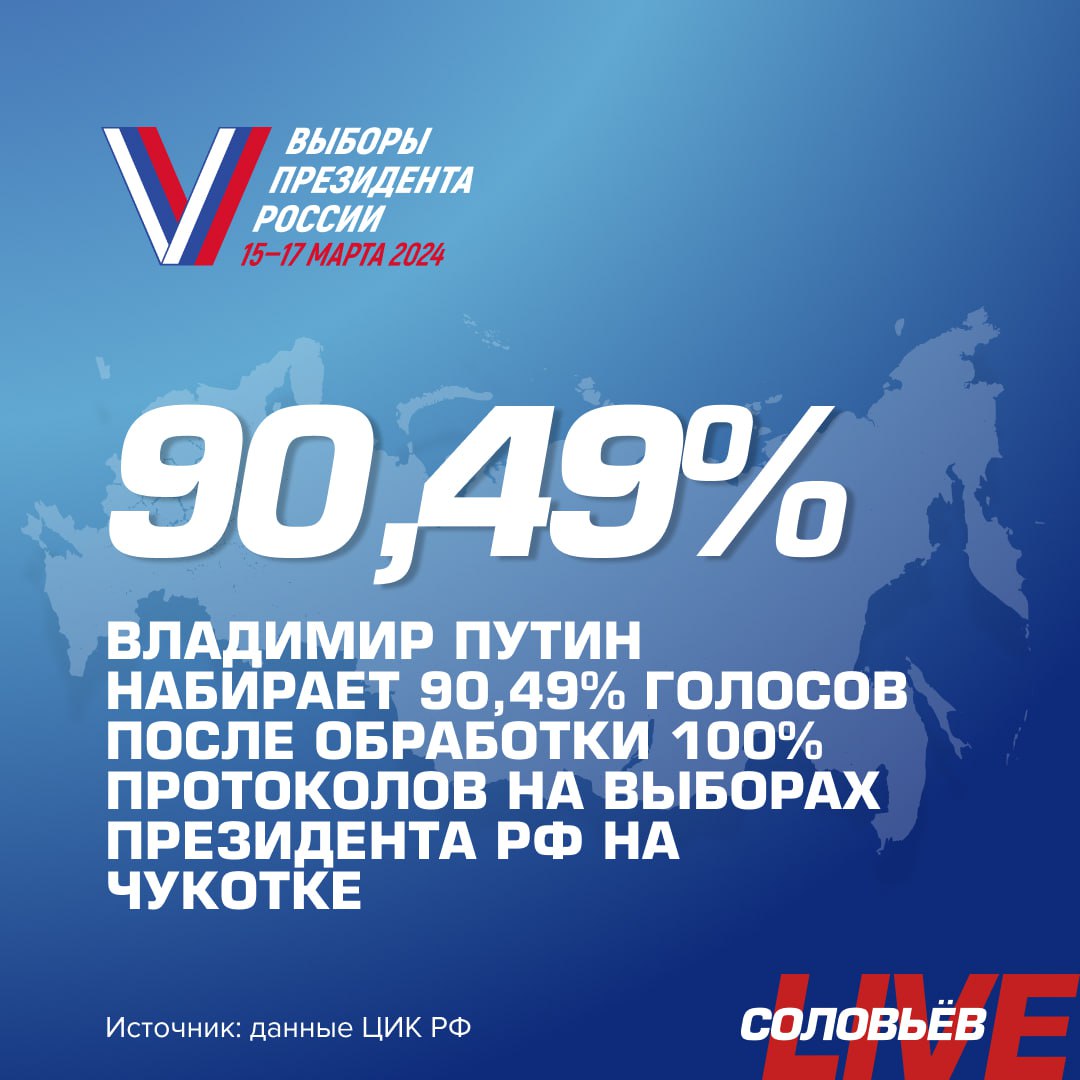 Владимир Путин победил на выборах президента России на Чукотке.