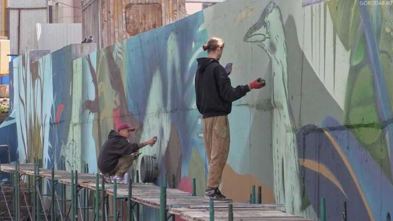 Напомним, GOROD48 анонсировал появление мурала в середине августа. Его наносят на стену, просматриваемую со спуска и Городища.