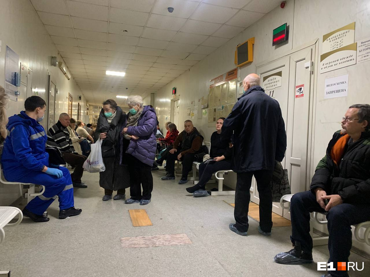 Очередь в травмпункте на Бажова как будто совсем не двигается. Десятки горожан сидят в ожидании первичного приема и столько же — в рентген-кабинет. За час, говорят пациенты, принимают по паре человек, поэтому пострадавшие морально готовят вновь прибывших, что провести в душном коридоре придется полдня. Среди пациентов в основном те, кто получил травму на улице.