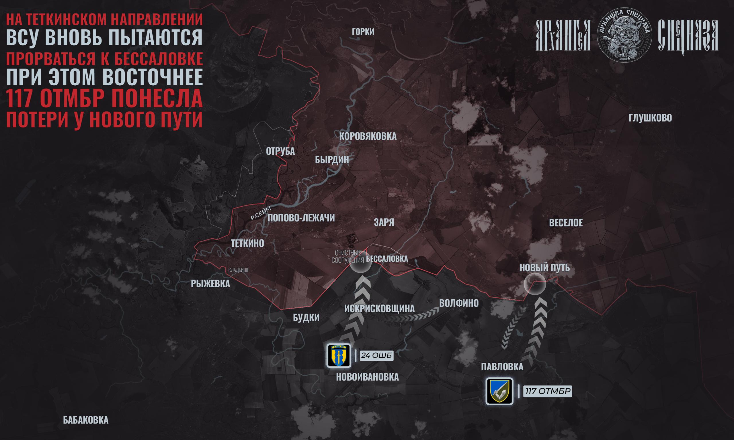 А вот восточнее в районе Бессаловки противник пытается удержать позиции на госгранице северо-западнее н.п.Искриссковщина.