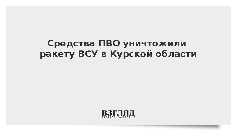 В пятницу расчеты противовоздушной обороны уничтожили украинскую ракету над Курской областью, сообщил глава региона Алексей Смирнов.