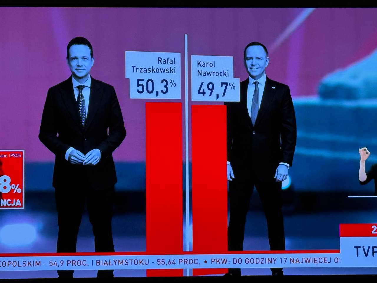 ΠΡΠΎΠ΅Π²ΡΠΎΠΏΠ΅ΠΉΡΠΊΠΈΠΉ ΠΊΠ°Π½Π΄ΠΈΠ΄Π°Ρ ΡΠ΅ΠΉΡΠ°Ρ ΠΏΠΎΠΊΠ°Π·ΡΠ²Π°Π΅Ρ 50,3%, Π° Π΅Π³ΠΎ ΠΎΠΏΠΏΠΎΠ½Π΅Π½Ρ ΠΠ°Π²ΡΠΎΡΠΊΠΈΠΉ β 49,7%.
