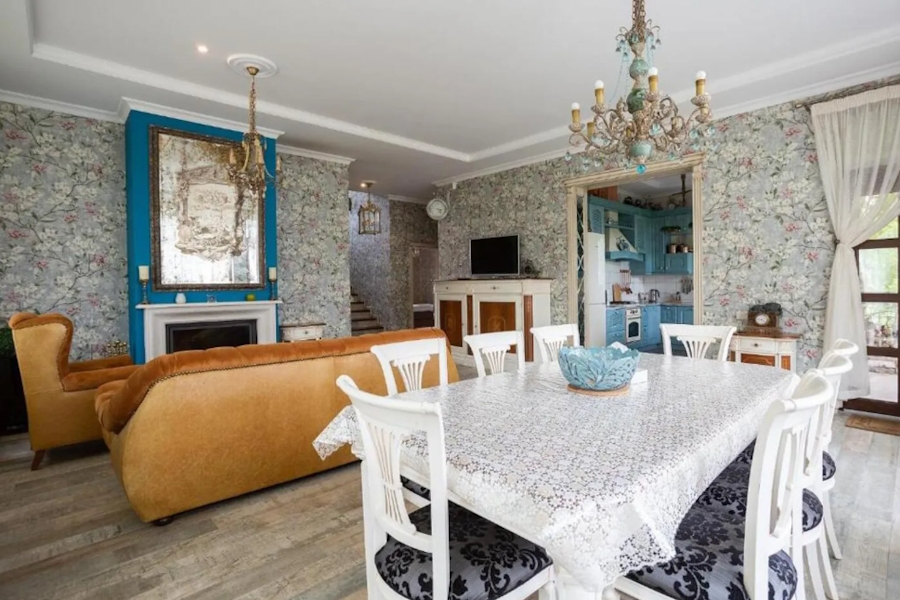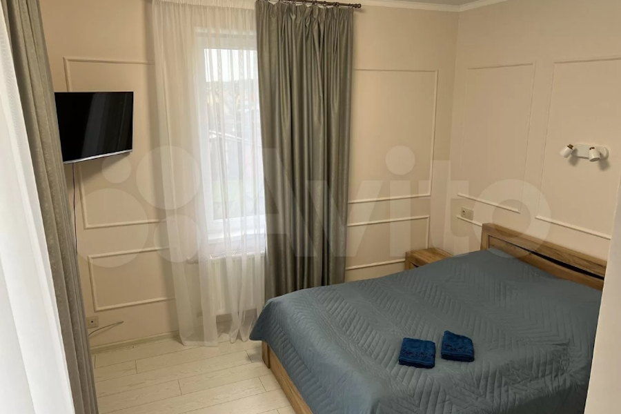 Двухэтажный дом площадью 200 м² расположен на ул. Береговой и вмещает до десяти гостей. Для них предусмотрены четыре спальни с восемью кроватями. Также в распоряжении арендаторов кухня, два санузла и прачечная. 80 метров отделяют дом от моря, его гости смогут не только услышать, но и увидеть из окна, обещают хозяева. В описании объекта они также рассказывают о дизайнерском ремонте, профессиональной уборке и современной технике.