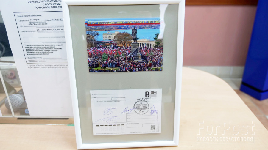 В Севастополе состоялось торжественное гашение специально выпущенной к 10-летию воссоединения города-героя с Россией открытки. На мероприятии в здании главпочтамта побывал корреспондент ForPost.