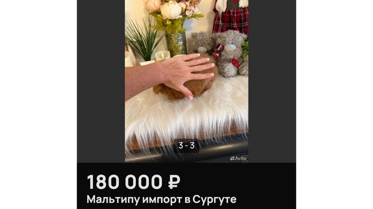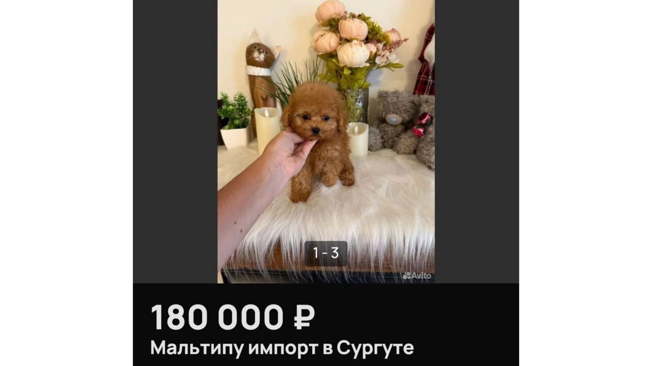 В Сургуте выставили на продажу щенков дизайнерской породы мальтипу в микроразмере. Вес 4-месячного щенка не превышает 700 грамм. У собаки очень короткая морда и лапы, подчеркивает владелец достоинства питомца. Объявление появилось на популярном сайте.