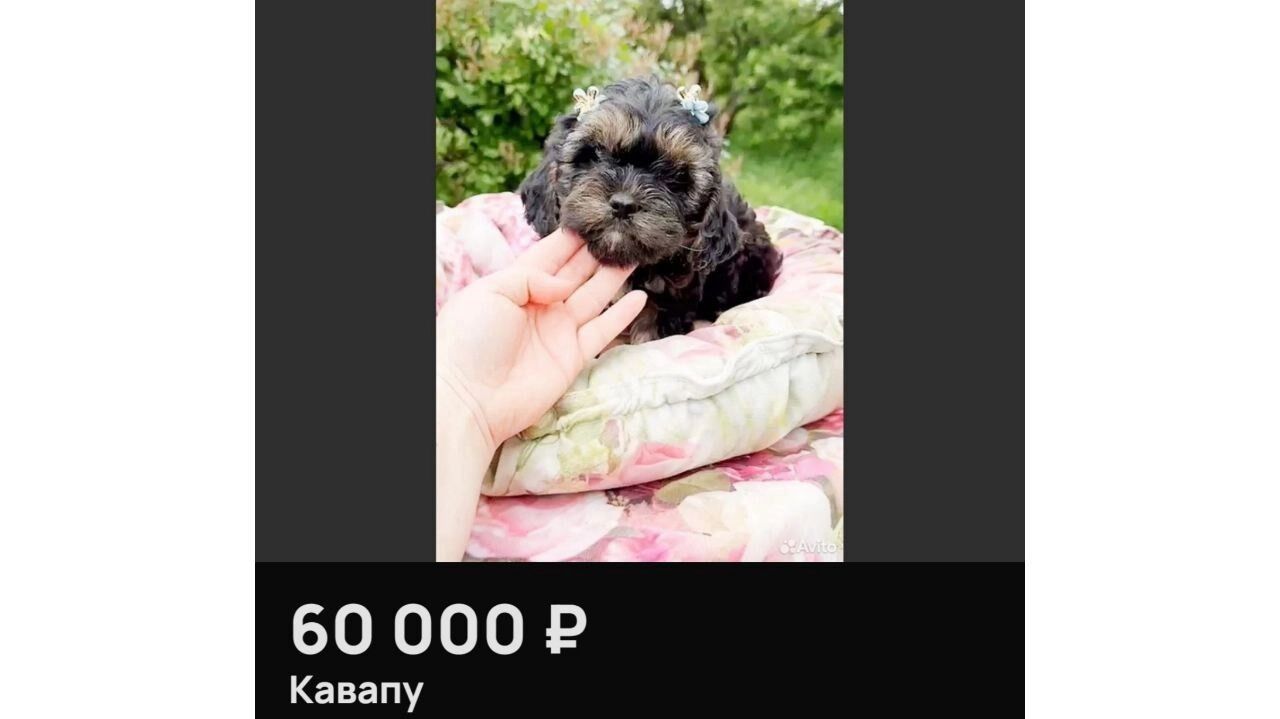 Кстати, этот же продавец предлагает и щенков и других дизайнерских пород — йоркипу и кавапу. Первая из них — метис йоркширского терьера и той-пуделя, вторая — кавалер-кинг-чарльз-спаниеля и миниатюрного пуделя. Стоимость варьируется от 60 до 100 тысяч рублей. Правда, если кавапу еще считается породой, выведенной в Австралии в 1950-е годы, то йоркипу — идея современных заводчиков. Ни одна из этих пород не признана кинологическими организациями, поэтому строгого стандарта — нет.