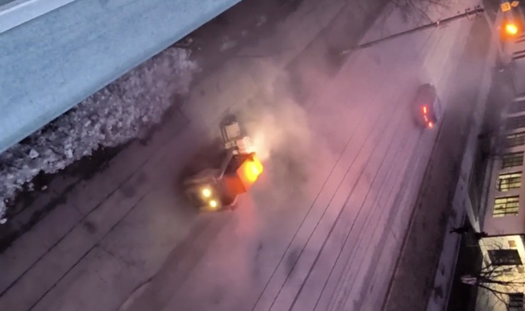 На сделанных девушкой кадрах видно, что при работе машины на асфальте от нее оставалась влага. Несмотря на это, сибирячка уверена: в воздухе поднимался не пар, а пыль от тротуара.