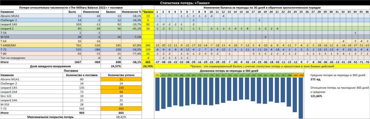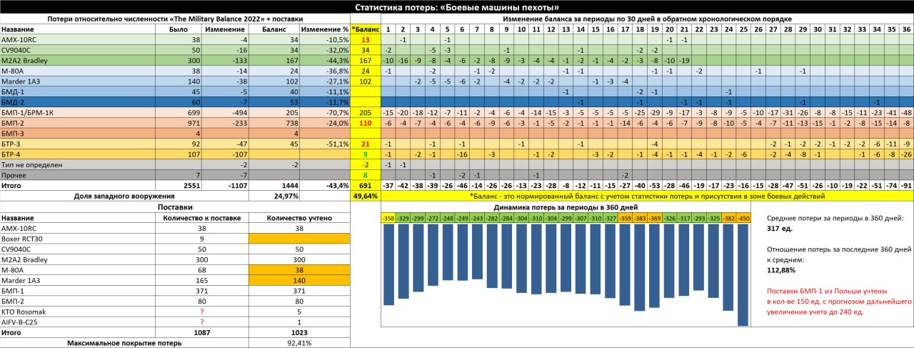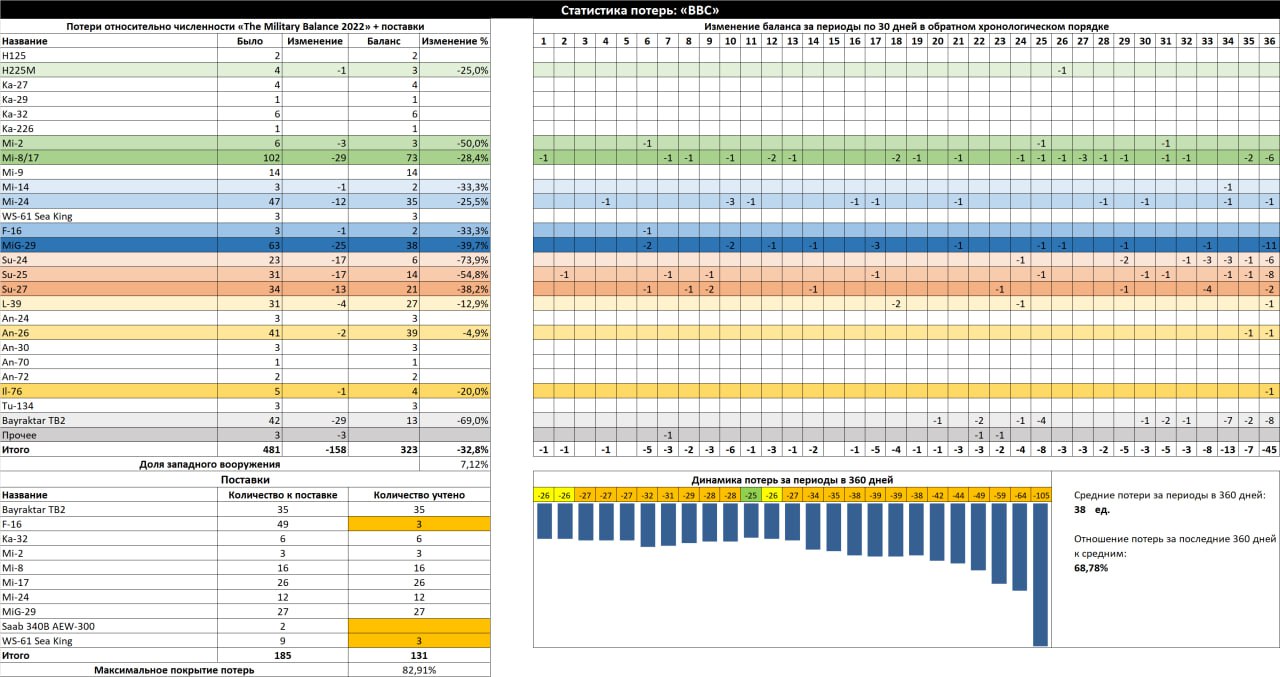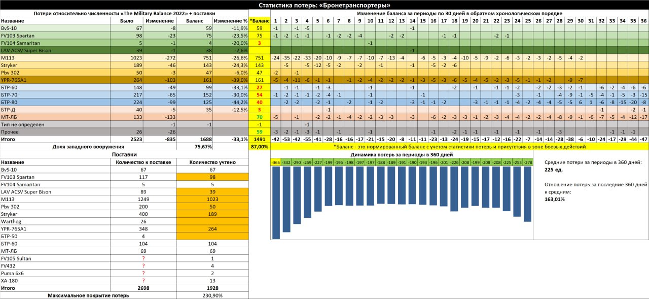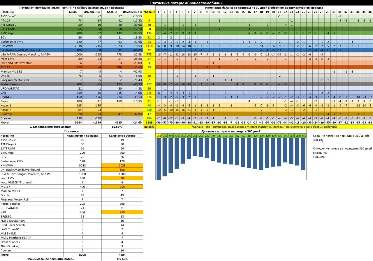 Данные не отражают кол-во фактически оставшейся техники ВСУ. Максимальное покрытие потерь не отражает реальное покрытие потерь.
