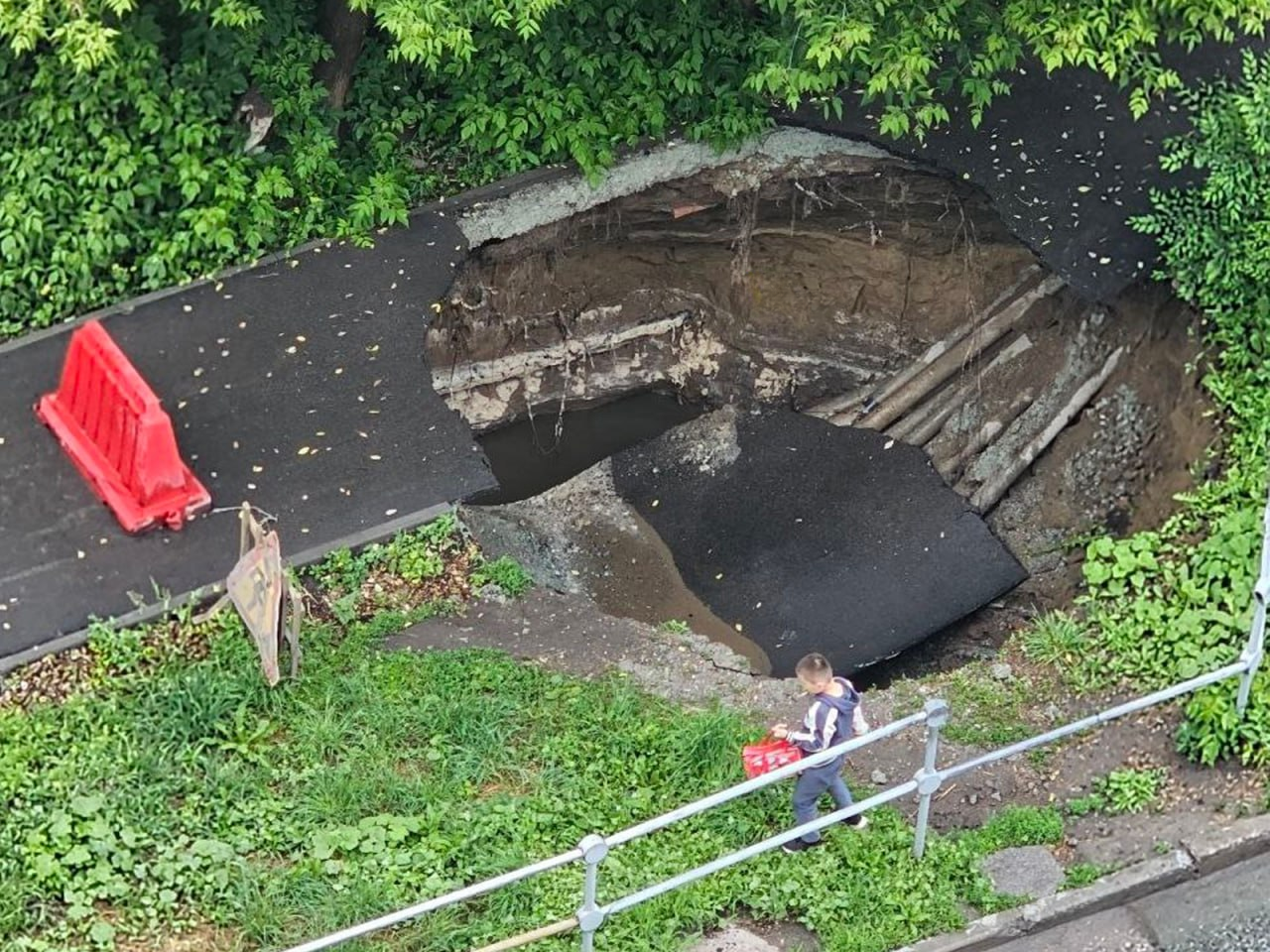 В Новосибирске на улице Бориса Богаткова тротуар ушел под землю. Инцидент произошел 8 июня. В мэрии рассказали, из-за чего произошел провал и как скоро восстановят асфальт.