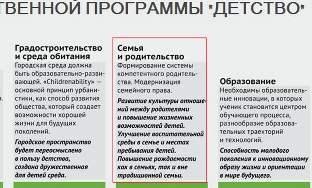 Что мы тут видим? Все то же самое – «формирование системы компетентного родительства», выращивание детей в воспитательных сообществах вне семьи. И вместо традиционных парадигм «дети не выбирают родителей» и «воспитывать детей может каждый» формируются некие «требования на компетентность воспитательных сообществ». Да и вообще, тренд намеренно сдвигается в сторону «многообразия форм совместной жизни». Что же это за формы такие разные? Не те ли, о которых выше рассуждала профессор ВШЭ Поливанова – сожительства извращенцев, в том числе?