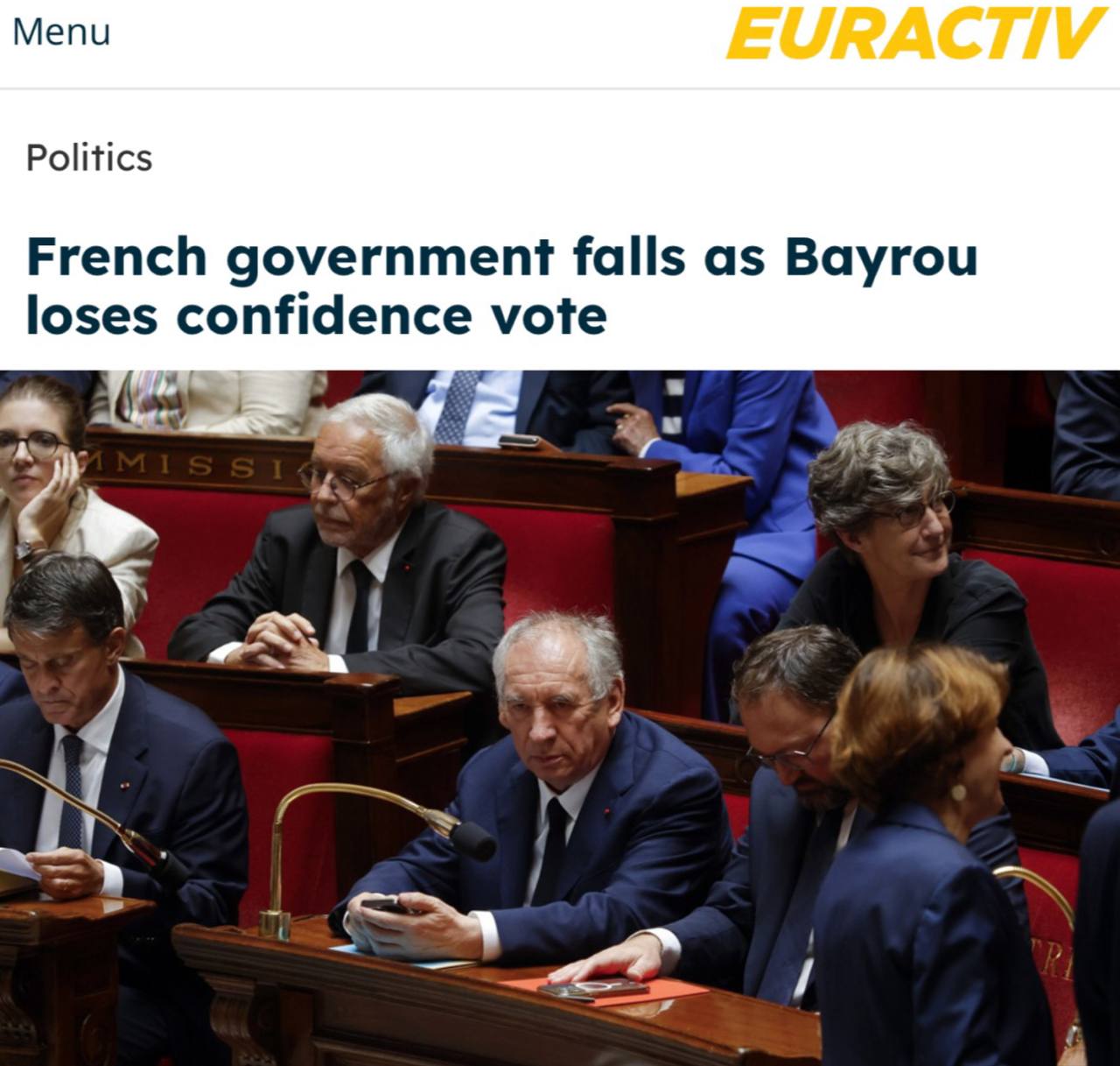 Депутаты во Франции выразили недоверие премьер-министру Байру – страна второй раз за год остается без правительства. Основной причиной подобного решения стал экономический кризис.