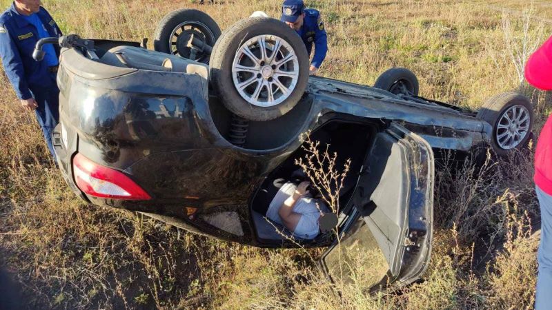 Печальное утро субботы: в Самарской области автомобиль Lada Granta «вылетел» в кювет и перевернулся