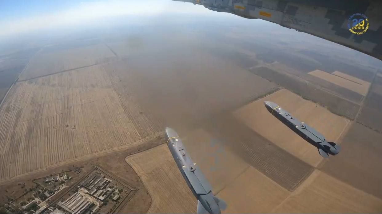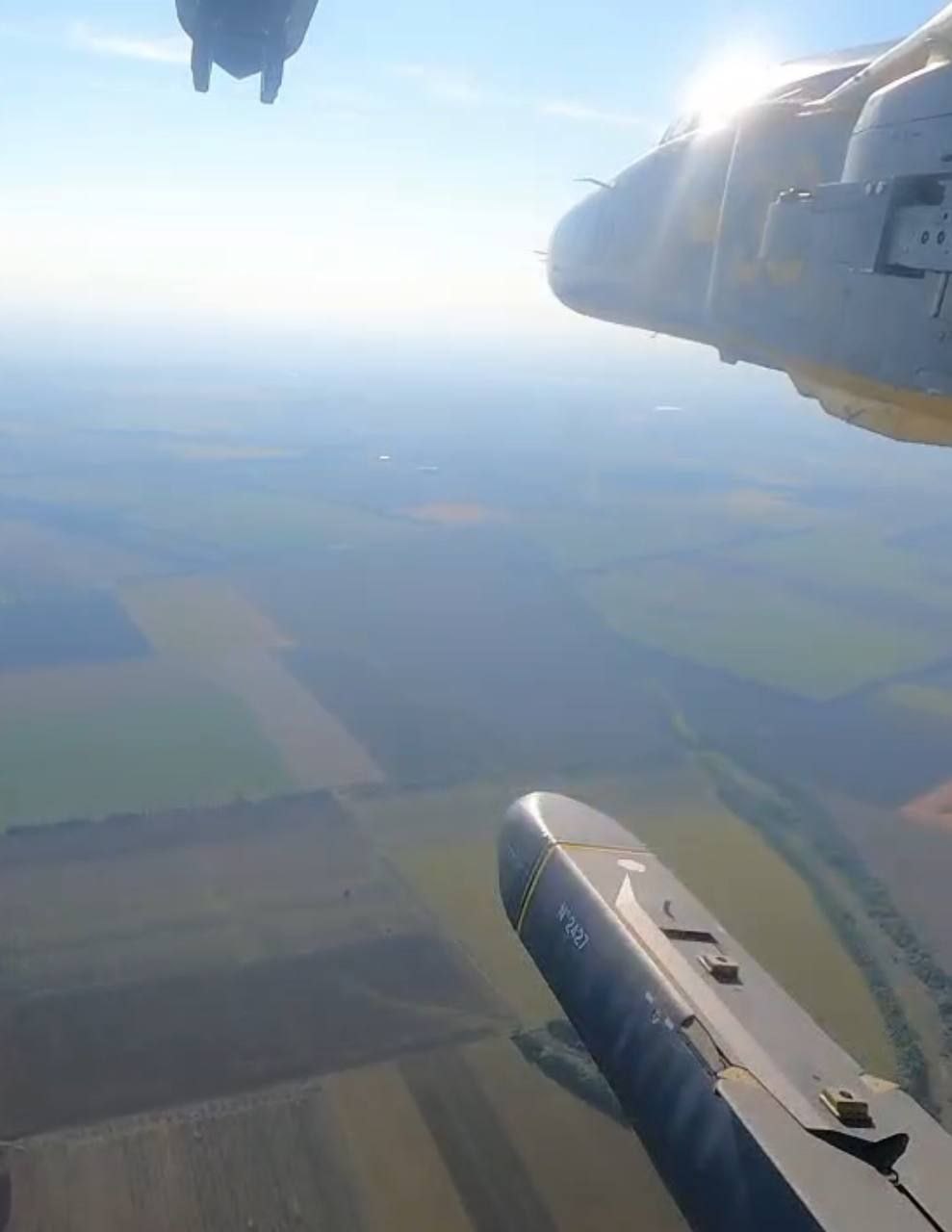 Кадры пуска двух крылатых ракет Storm Shadow/ SCALP при помощи Су-24 ВВС Украины.