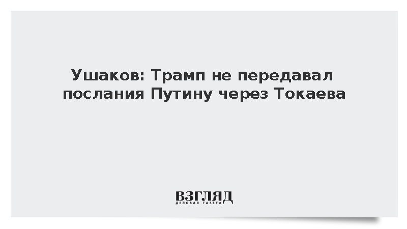 Президент США Дональд Трамп не направлял президенту России Владимиру Путину никаких посланий через президента Казахстана Касым-Жомарта Токаева, который недавно находился в Соединённых Штатах, передает ТАСС. Об этом сообщил помощник президента России Юрий Ушаков в разговоре с телеканалом «Россия-1».