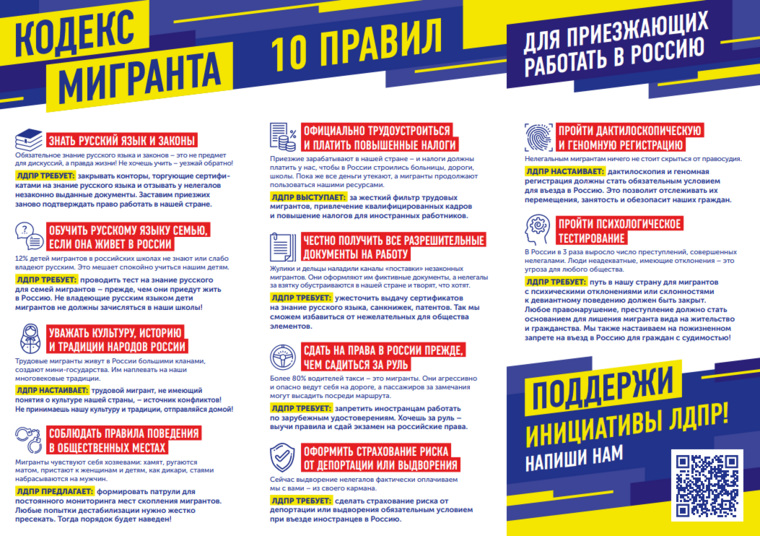 В Свердловской области появились листовки с неким «кодексом мигранта», состоящим из 10 правил. Распространяет их ЛДПР. Координатор реготделения ЛДПР Александр Каптюг пояснил URA.RU, что идея исходит от федерального руководства партии.