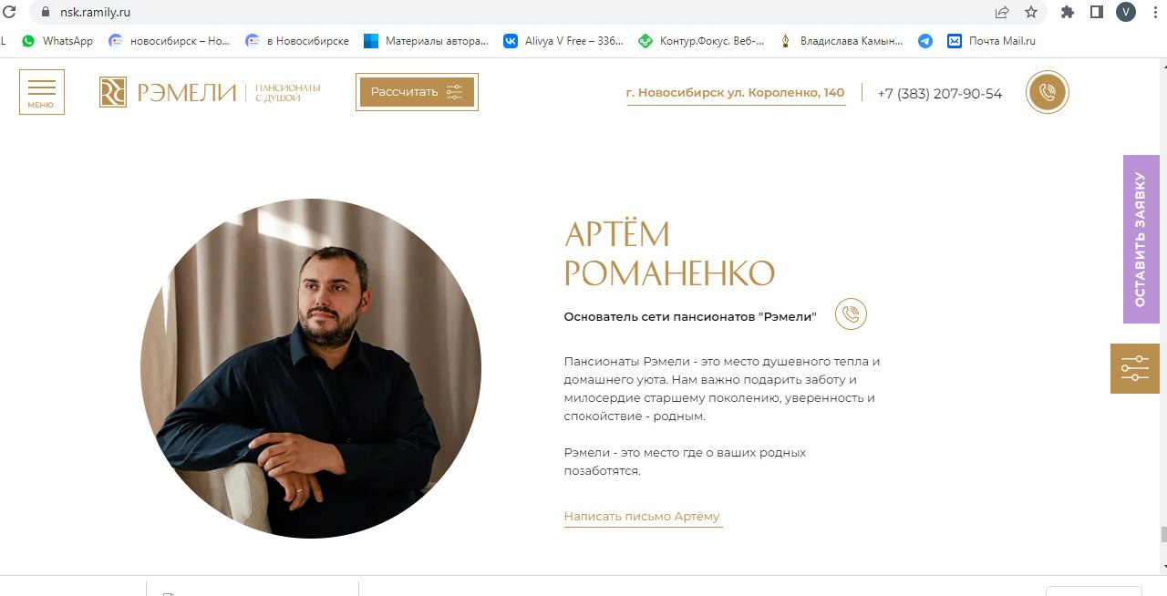 Всего Артем Романенко сейчас значится учредителем и соучредителем девяти коммерческих организаций. Под ними работает не меньше 10 домов престарелых в Новосибирске, Кемерово и Новокузнецке.
