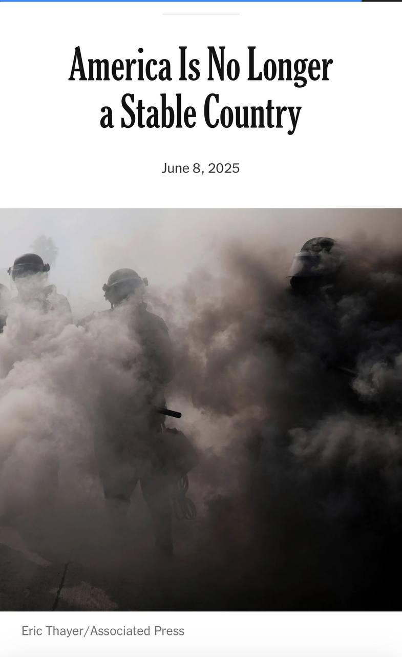 Нельзя также игнорировать напряжённость в отношениях между Трампом и Ньюсомом. Администрация США рассматривает возможность полного прекращения федерального финансирования Калифорнии, а Ньюсом в ответ пригрозил отказаться от уплаты федеральных налогов. Тут стоит отметить, что калифорнийцы платят федеральному правительству больше налогов, чем штат получает в виде федерального финансирования. Очень похоже на Донбасс 2014 года. Но это другое.