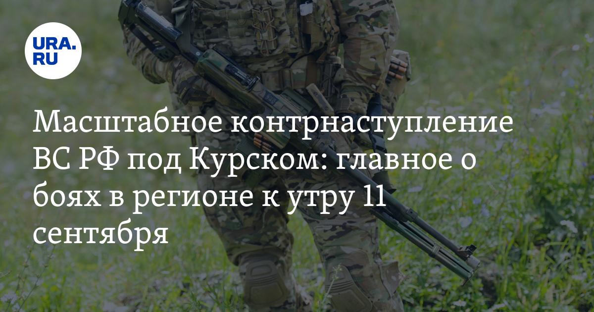 Российские войска 10 сентября начали контрнаступление в Курской области, вытесняя с территории солдат ВСУ. По сведениям военкоров, боевики выбиты с территории около десятка населенных пунктов. Генерал-майор Апти Алаудинов подтвердил сообщения о продвижении, но не сведения о спланированной операции по освобождению курского приграничья. Минобороны РФ сообщения не комментировало. Подробности контрнаступления ВС РФ к утру 11 сентября — в материале URA.RU.
