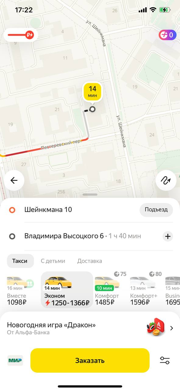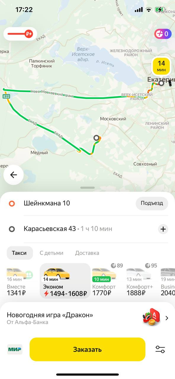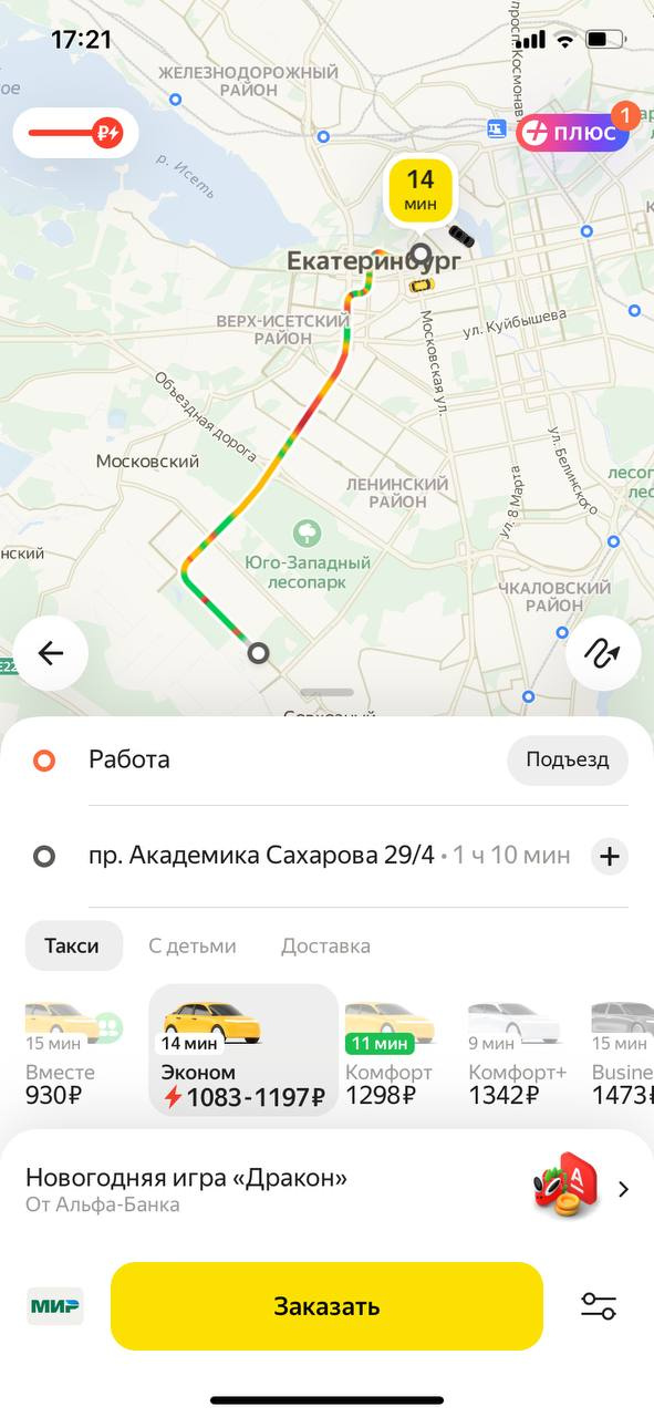 В Екатеринбурге вечером 26 декабря резко взлетели цены на такси. Пробки в городе достигли рекордных одиннадцати баллов, поэтому ехать домой очень долго и дорого. Только посмотрите, во сколько обойдется поездка из одной точки в центре года в разные районы города.