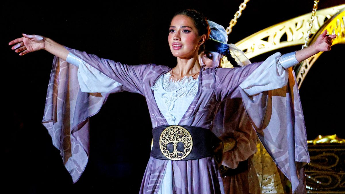 Дальше одна за другой идут сцены, которые, как в быстрой перемотке, пытаются показать важные события для Татарстана. И здесь почти нет текста. Можно по каким-то мелким моментам понять, что происходит на льду, но осознанно погрузиться — нет. Красивые костюмы, массовые расходы, за которыми нет никакого сюжета. Так, трагичная сцена тут же сменяется народными гуляниями, а после — ожесточенной битвой. Невозможно в этом полотне понять особенности именно татарского народа и культуры. Какой-то адский замес… И он вряд ли заставит хоть кого-нибудь узнать больше о сложной, но насыщенной истории Татарстана.