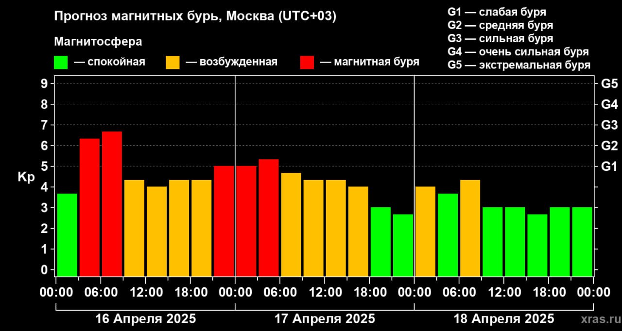 ⚡️На Землю рухнула МОЩНЕЙШАЯ магнитная буря: сейчас и завтра утром будет «сильный» уровень G3, а спадёт до «среднего» — лишь к вечеру.