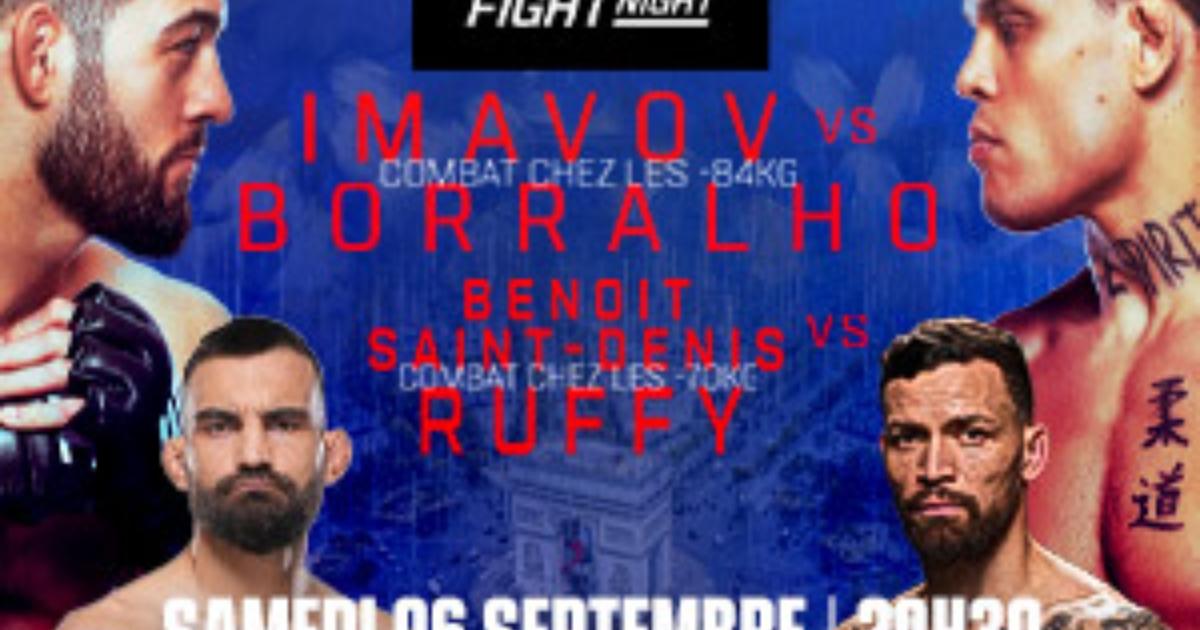 Passer la publicité Passer la publicitéCe soir, 5 Français sont attendus lors de l’UFC Paris 2025. Tous ou presque auront un combat de haute volée, avec des adversaires redoutables. L’UFC Paris 4 est le plus grand événement MMA de l’année dans l’Hexagone. 14 combats sont au programme au cours de la soirée. Le main event de l’UFC Fight Night Paris est un choc entre Nassourdine Imavov (16 victoires, 4 défaites, numéro 2) face à Caio Borralho (17 victoires, 1 défaite, numéro 7) chez les poids moyens (-84 kg). L’enjeu sportif est énorme puisque le Sniper a l’occasion de s’offrir un combat pour le titre contre Khamzat Chimaev ou, au contraire, de dégringoler au classement. Le co-main event de l’UFC Paris est Benoît Saint-Denis (14 victoires, 3 défaites, numéro 13) face à Mauricio Ruffy (12 victoires, 1 défaite, numéro 15). Sèchement battu lors de l’UFC Paris 2024, le God of War se promet un défi de taille face à l’une des étoiles montantes chez les -70 kg, Mauricio Ruffy, striker d’élite. Axel Sola - Rhys McKee (-77 kg), William Gomis - Robert Ruchala (-66 kg) et Oumar Sy - Brendson Ribeiro (-93 kg) font partie des autres combats à suivre ce soir.