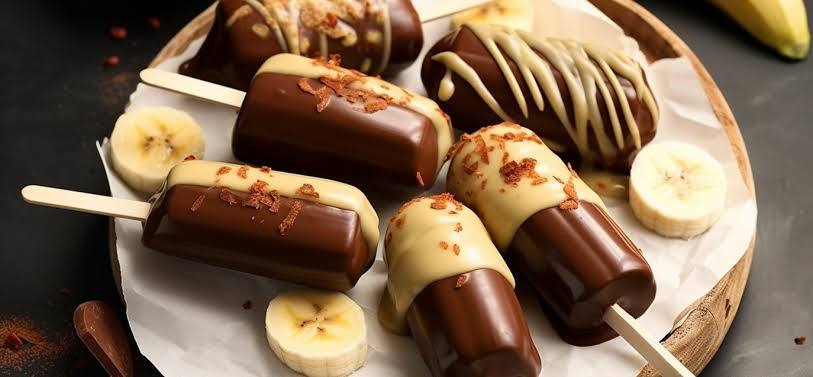 6․ Насадите каждую пирамидку из бананов на шпажку и окуните в шоколад. Покрывайте им полностью или только наполовину.