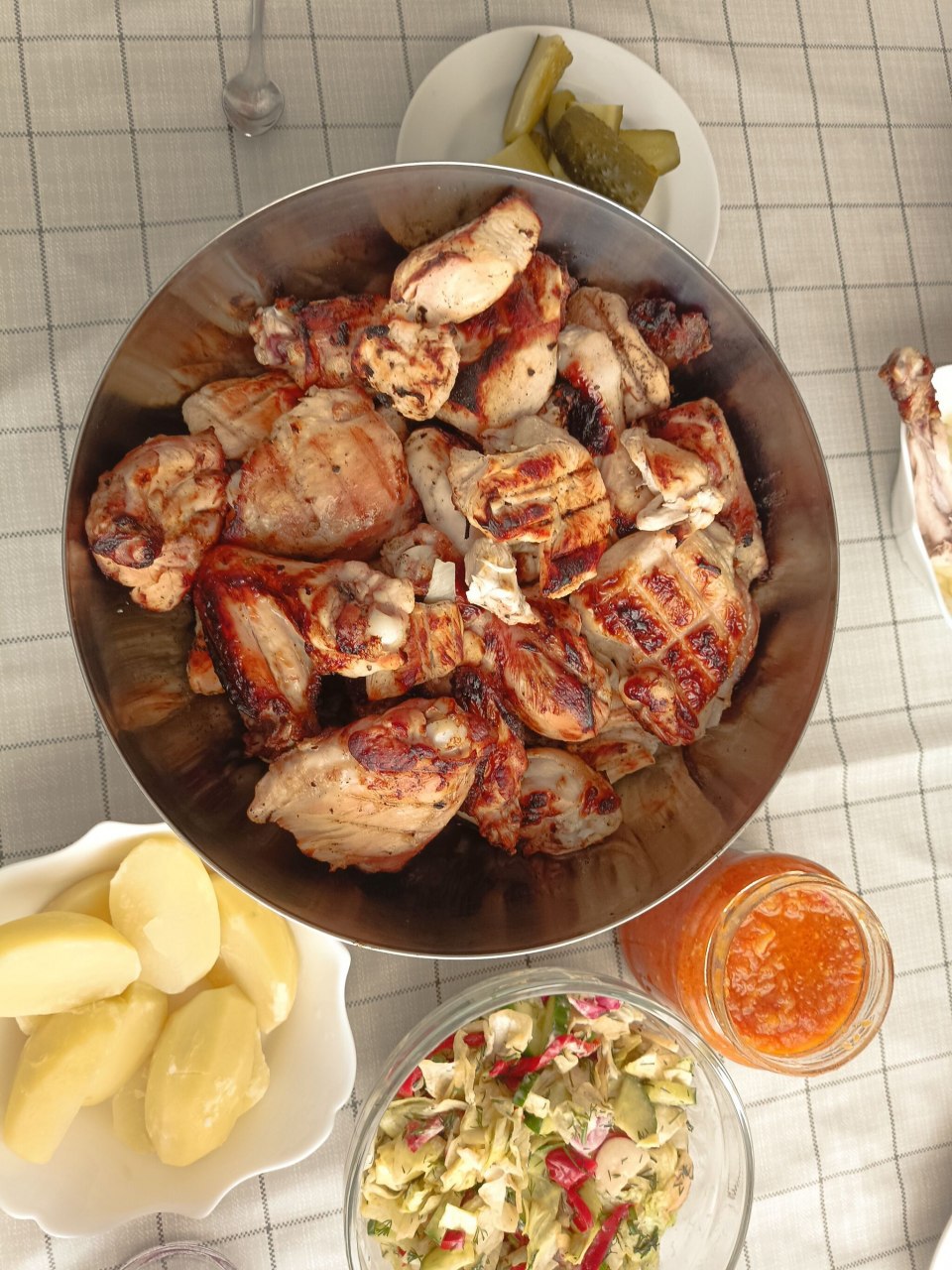«В преддверии майских праздников выкладываю рецепт шашлыка с уксусом, наработанный за десятки лет. Никаких лишних приправ, только лук, соль, перец и уксус, всё остальное забивает вкус мяса. Сегодня делаю из курицы, но со свининой всё ровно то же самое».