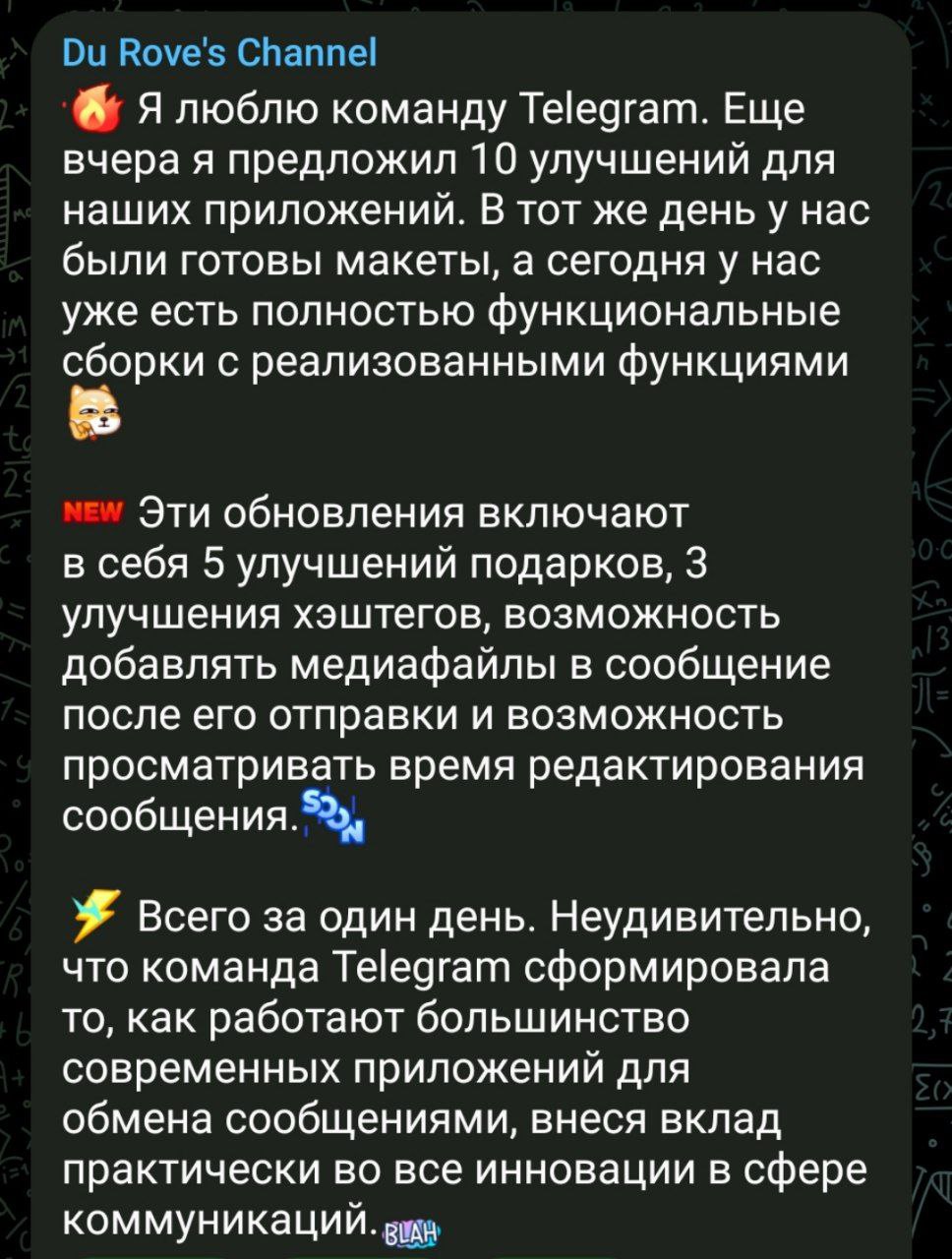 πΠΠ°Π²Π΅Π» ΠΡΡΠΎΠ² Π°Π½ΠΎΠ½ΡΠΈΡΠΎΠ²Π°Π» ΠΎΡΠ΅ΡΠ΅Π΄Π½ΡΠ΅ ΠΎΠ±Π½ΠΎΠ²Π»Π΅Π½ΠΈΡ Π² Telegram