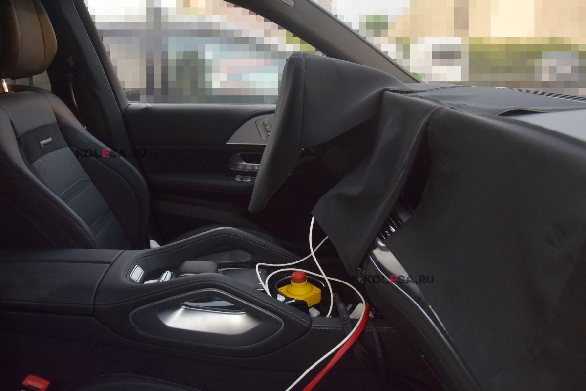 Вероятно, в основу прототипа легла топовая версия обновлённого Mercedes-Benz GLE. На снимках видно, что у системы будет иной интерфейс с более современной графикой. Ожидается, что у версий попроще на передней панели будет пара отдельных дисплеев диагональю 10,25 дюйма (только цифровая приборка и сенсорный экран мультимедиа). Ещё отметим, что у автомобиля на фото иначе оформлены спицы рулевого колеса.