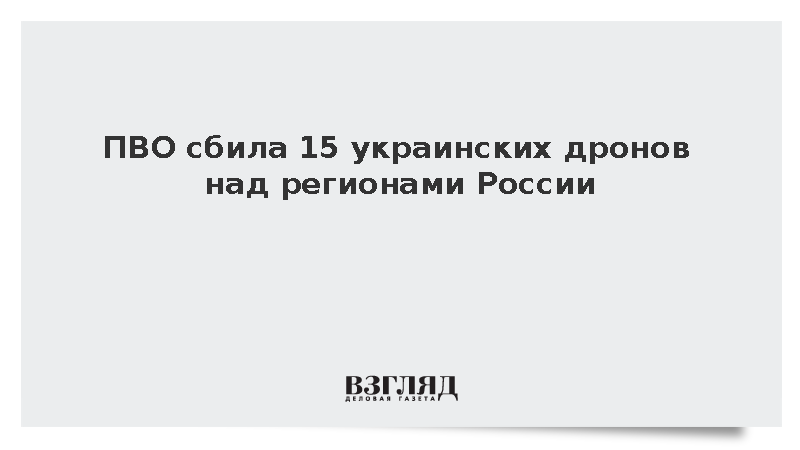 В результате работы сил ПВО в регионах России были сбиты 15 украинских беспилотников самолетного типа, сообщило Минобороны.