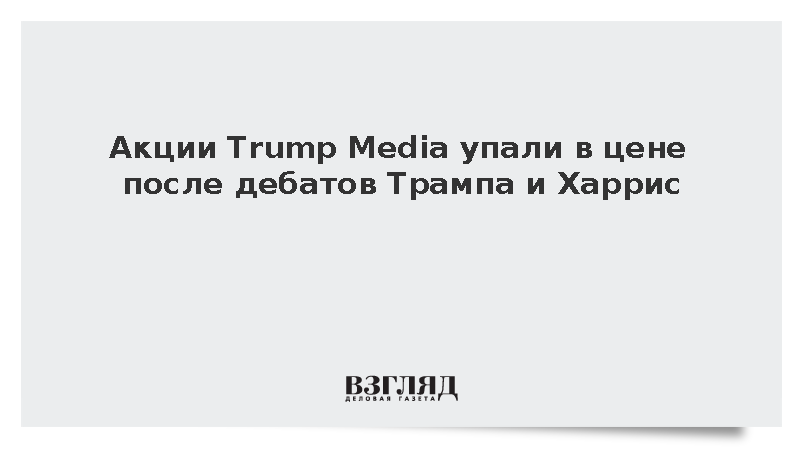Стоимость ценных бумаг компании Trump Media&Technology Group (TMTG) на предварительных торгах снизилась на 17% после дебатов кандидатов в президенты США Дональда Трампа и Камалы Харрис.
