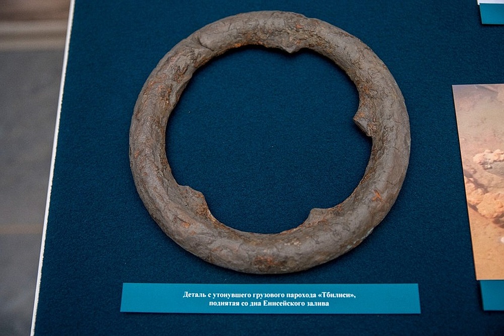 Один из поднятых со дна артефактов был передан музею Таймыра и теперь вместе с фотографиями экспедиции стал частью выставки.