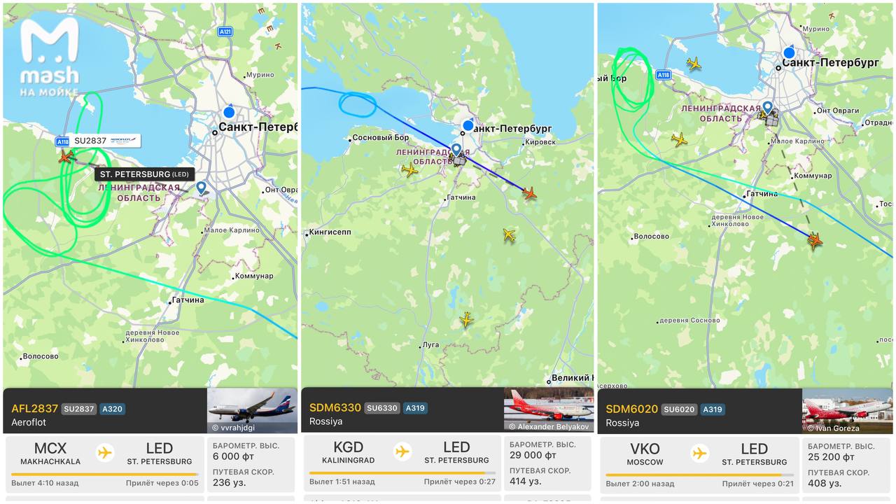 Несколько самолётов не могут сесть в Пулково — борты кружат над Питером и Ленобластью, ожидая разрешения.