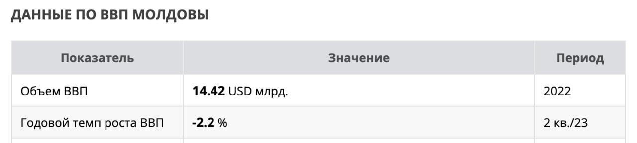 Интересная статистика: ВВП Молдовы без всяких боевых действий и санкций упало уже больше чем ВВП РФ за 2022 год.