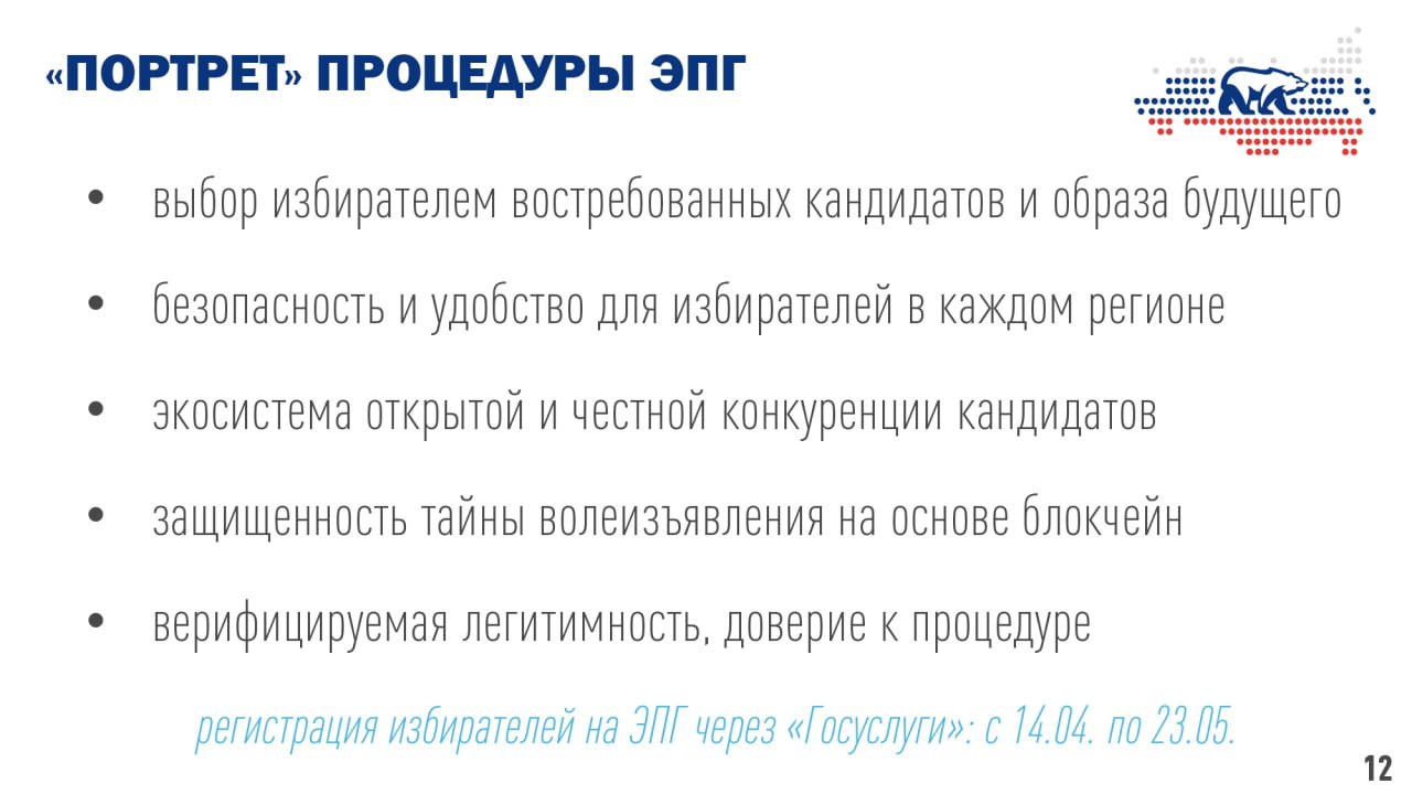 Сенатор и первый заместитель председателя Комитета Совета Федерации по регламенту и организации парламентской деятельности Сергей Перминов подчеркнул, что другие парламентские партии начинают заимствовать опыт ЭПГ, вводя процедуру предварительного отбора кандидатов. По его словам, на данный момент платформа «Единой России» является самой современной, и в ноябре прошлого года партия была признана лучшей цифровой партией среди стран БРИКС.