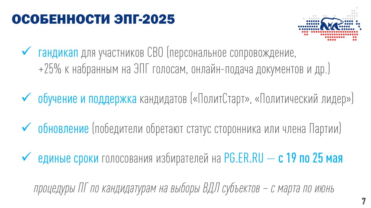Перминов также сообщил, что в 2025 году «Единая Россия» сохранит поддержку для участников СВО, включая персональное сопровождение и дополнительные 25% голосов в процессе электронного голосования. Вдобавок будут запущены образовательные модули для кандидатов с волонтерским и другим опытом.