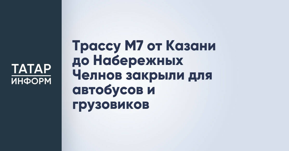 Информация на этой странице взята из источника: https://www.tatar-inform.ru/news/trassu-m7-ot-kazani-do-nabereznyx-celnov-zakryli-dlya-avtobusov-i-gruzovikov-6012470