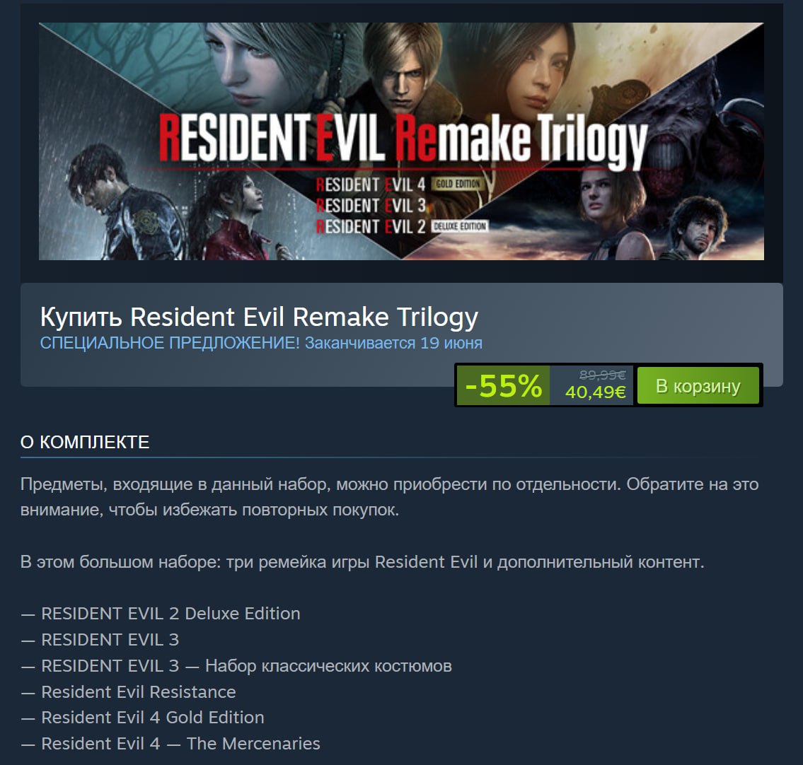 ⚡️Все ремейки Resident Evil со всеми DLC можно забрать за 1935 рублей, а бандл с полными изданиями — за 990 рублей