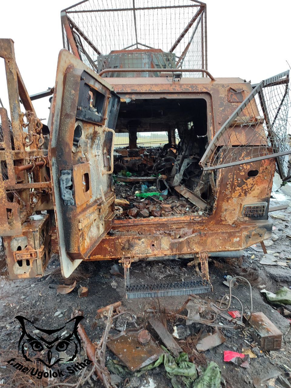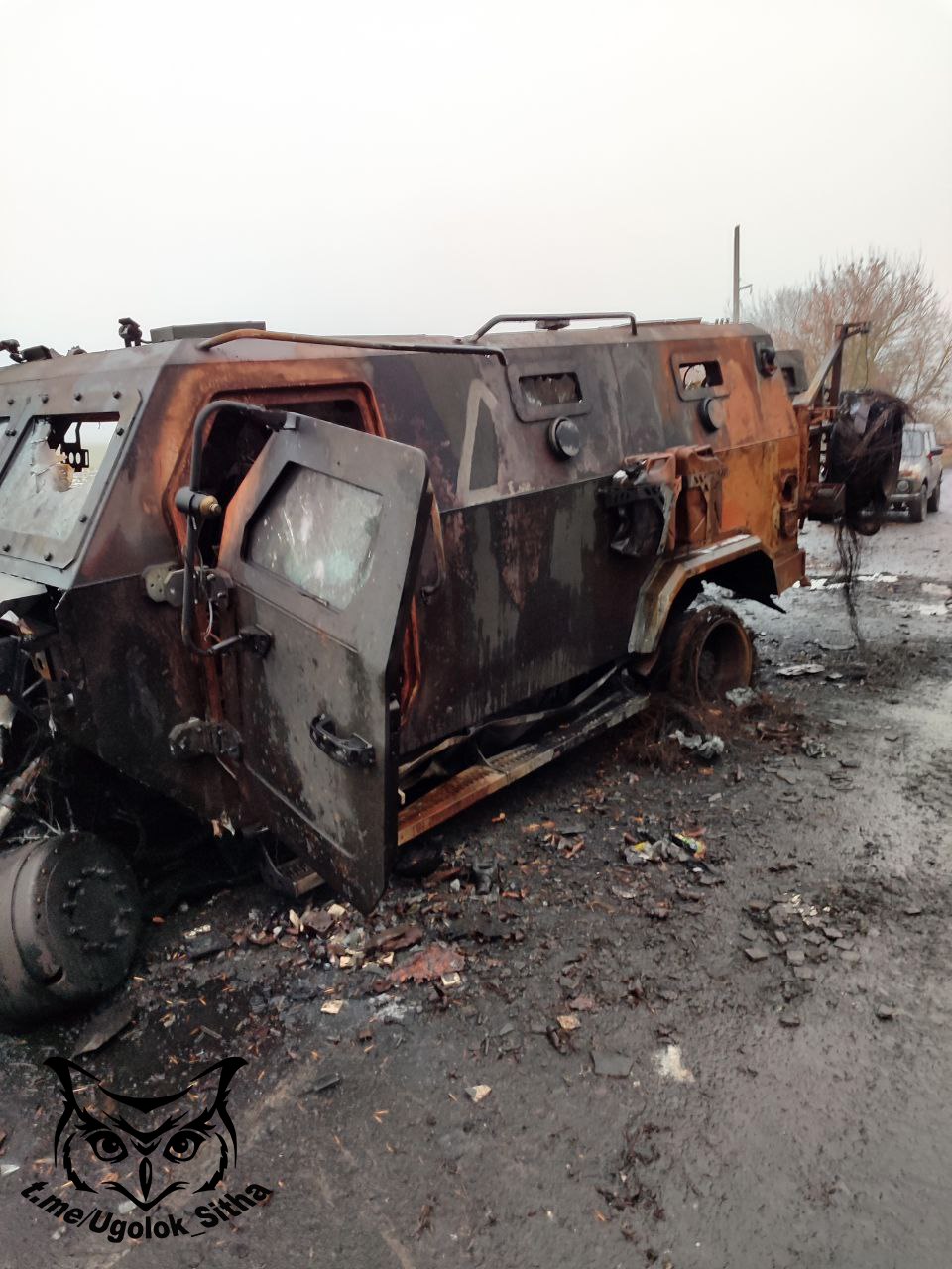 Курская область. Два уничтоженных украинских бронеавтомобиля Козак-7 около н.п.Ольговка.