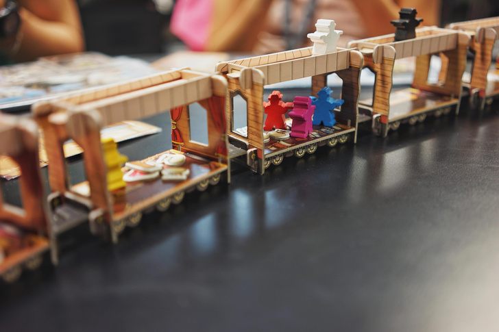 Пожалуй, это самая веселая, шумная и непредсказуемая игра в нашем списке. В «Кольт Экспрессе» вам предстоит погрузиться в атмосферу Дикого Запада и ограбить собранный из картонных деталей поезд, избежав встречи с шерифом. При этом каждый из участвующих в налете бандитов играет сам за себя и пытается следовать собственному плану, но неумолимая механика игры постоянно вносит в процесс изрядную долю случайности и хаоса. Разумеется, по итогам пяти обязательных раундов побеждает тот, кому удалось сорвать самый большой куш.