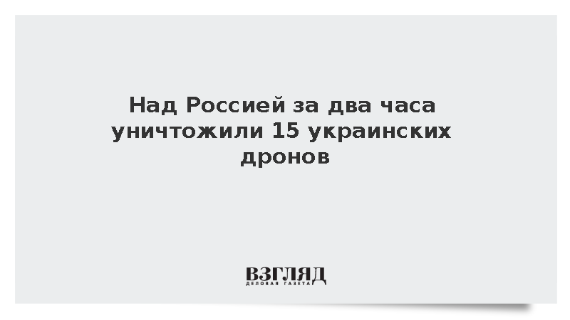 Средства противовоздушной обороны уничтожили над страной 15 украинских беспилотников в промежуток в два часа, сообщило Минобороны России.