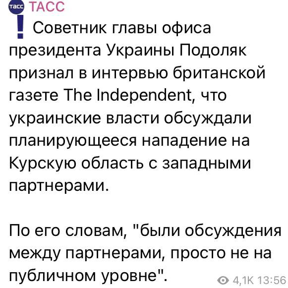 Правда: Советник главы офиса украинского президента Михаил Подоляк опроверг своих боссов в Вашингтоне. В интервью британскому изданию The Independent, он проболтался, что Киев обсуждал вторжение с США.