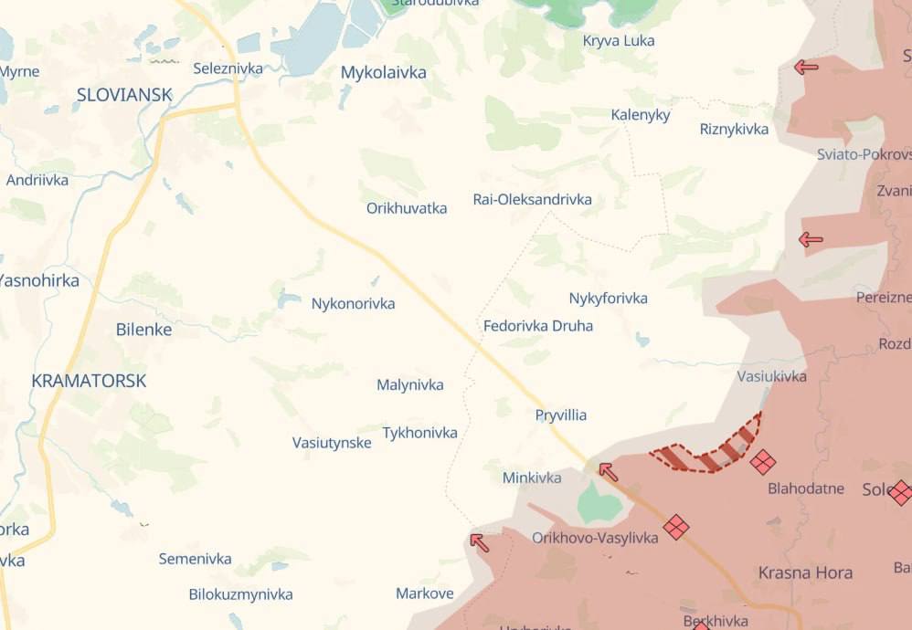 По данным проекта Deep State, российские войска установили контроль над Красногорским и продвинулись в районе Привольного, на стыке Запорожской и Днепропетровской областей.