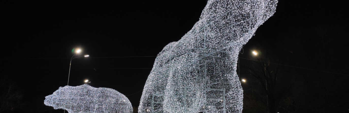 Всю зиму карагандинцев радовали фигуры полярных медведей и сказочных оленей. На аллеях парка были развешены различные световые композиции, а венчал все 11-метровый светящийся корабль.Сейчас пришло время убирать декорации, освобождая место для будущих весенних украшений.